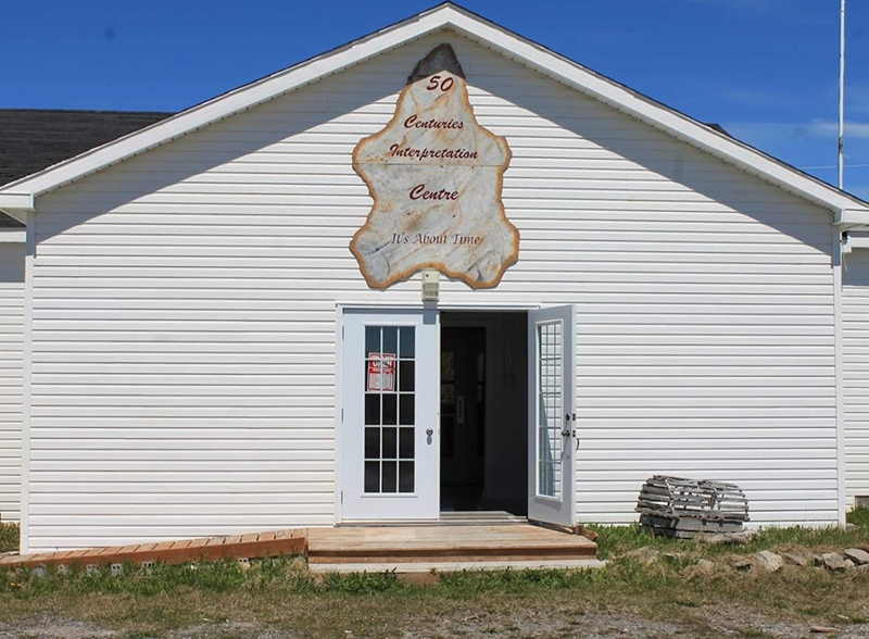 The 50 Centuries’ Interpretation Centre features artifacts from several local prehistoric cultures. There are two archaeological sites relating to the Maritime Archaic Indians, including the Big Droke living site and the Caines tool production site, which date to approximately 4500 BP. The site also exhibits artifacts from the Groswater Paleoeskimo culture dating to 2800 BP, and features animal bones such as seal and caribou which have been found and indicate a late spring/early summer occupation period. Also present is material from the Dorset Paleoeskimo, from 2000 to 1200 BP, as well as Recent Indian culture from 2000 to 1100 BP. Both the Dorset Paleoeskimo and the Recent Indians occupied the site during the same period.