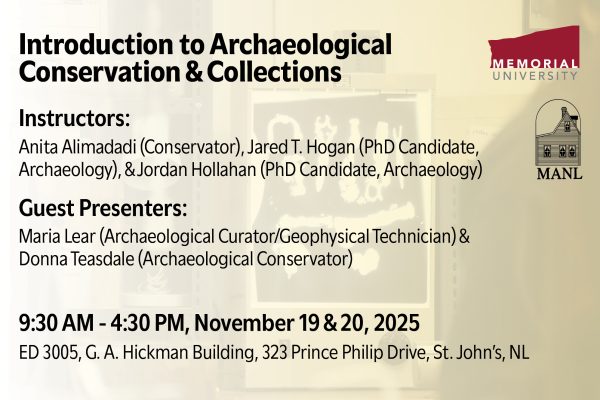 Read moreThe Museum Association of Newfoundland and Labrador, in partnership with Memorial University, is pleased to offer Introduction to Archaeological Conservation & Collections.